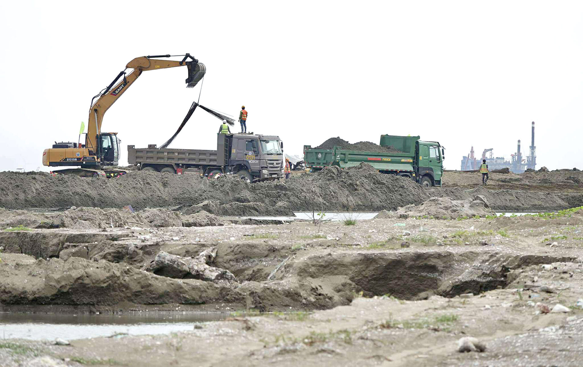 Công trường dự án khu đô thị lấn biển Cần Giờ (xã Cần Giờ, TP.HCM) sau gần nửa năm thi công